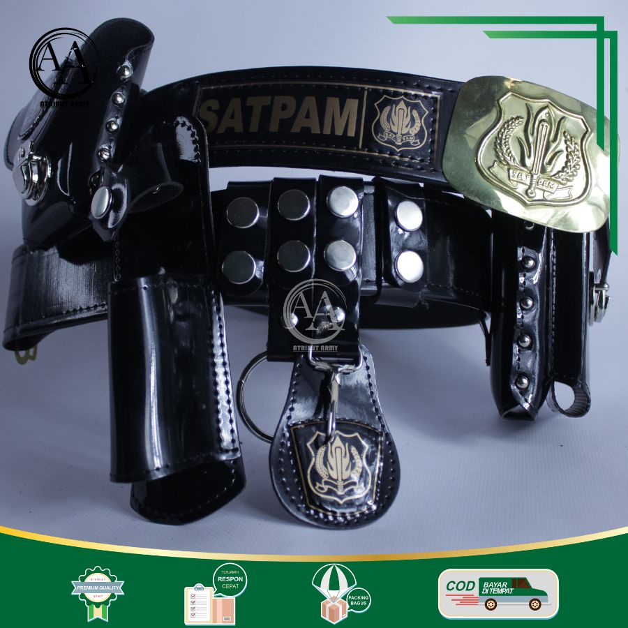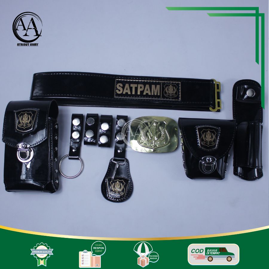 SABUK KOPEL LOGO SATPAM FULLSET & KEPALA BANGKOL IKAT PINGGANG ATRIBUT PERLENGKAPAN SECURITY SATPAM PRIA