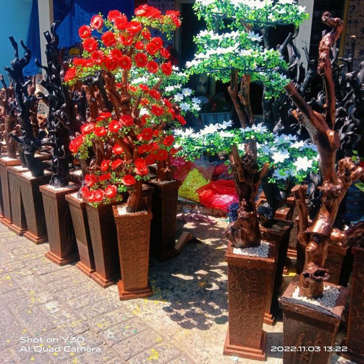 Dekorasi Taman TINGGI 140CM 11 KUNTUM X 9 CABANG LENGKAP POT+ BEBATUAN SAKURA RIMBUN // POHON BUNGA HIAS SEMANGGI 130CM