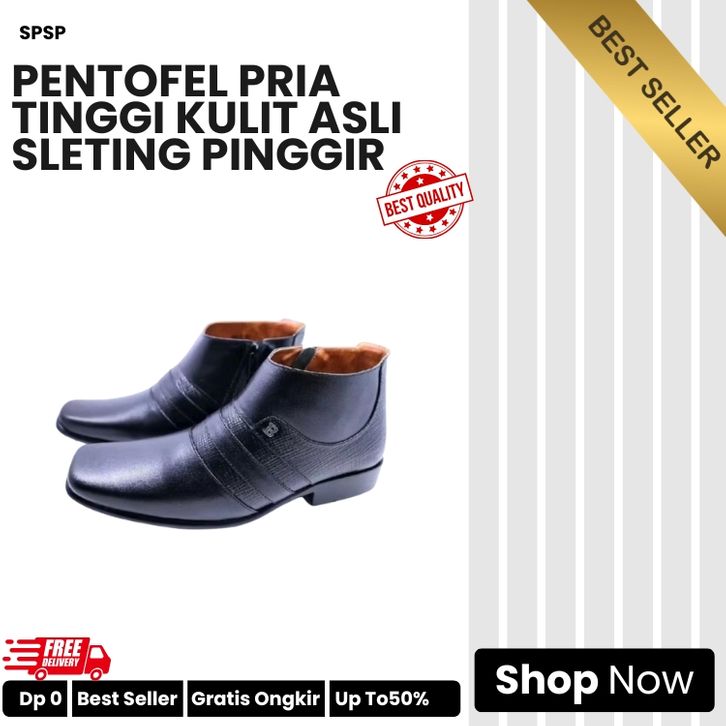 Sepatu Pentofel Pria Tinggi Kulit Asli Sleting Pinggir