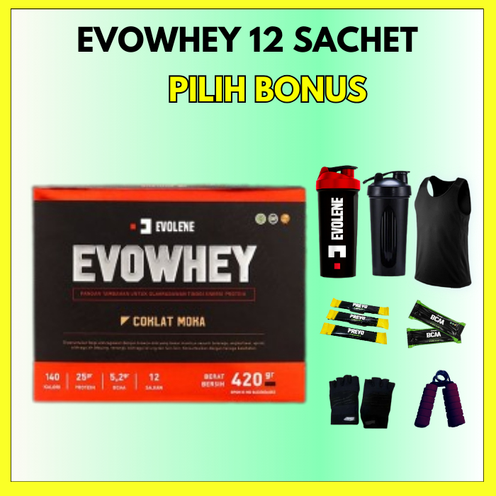 EVOWHEY 12 SACHET EVOLENE WHEY OFFICIAL EVO LENE 420 GRAM 1 BOX HALAL PROTEIN EVOLEN EVOLIN PROTEIN