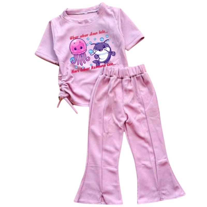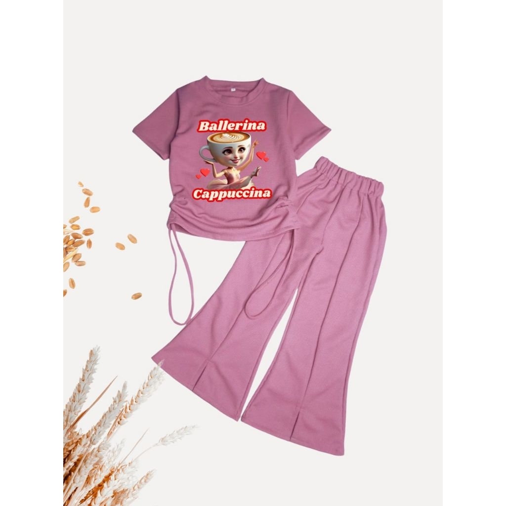 BAJU SETELAN ANAK PEREMPUAN GAMBAR BALERINA CAPUCINA LABUBU & KUROMI 2-11 TAHUN | SETELAN CUTBRAY CROP TOP ANAK | KORE