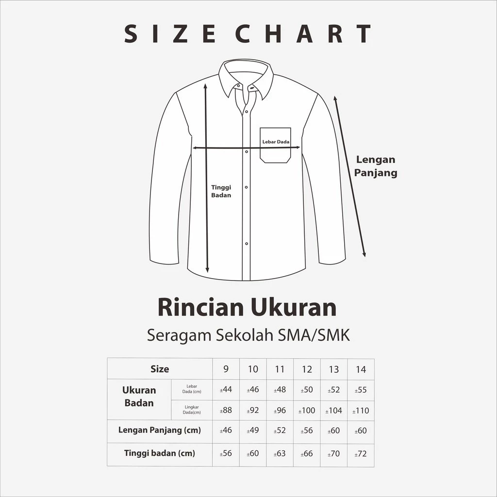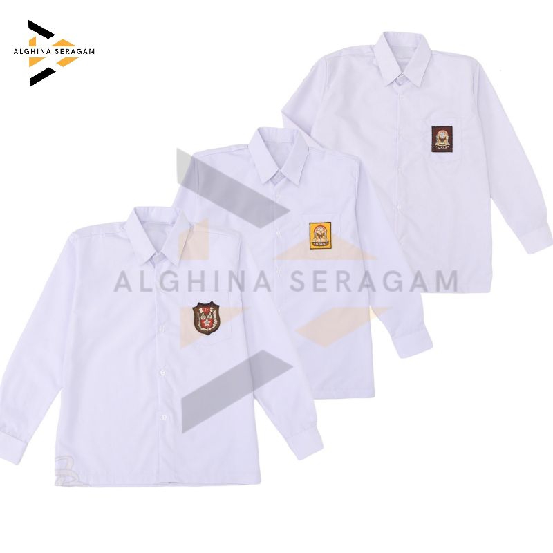 ALGHINA BAJU SERAGAM SEKOLAH SD SMP SMA KEMEJA ATASAN PUTIH LENGAN PANJANG BET BORDIR KAIN OXFORD SARIWARNA LAKI-LAKI & PEREMPUAN
