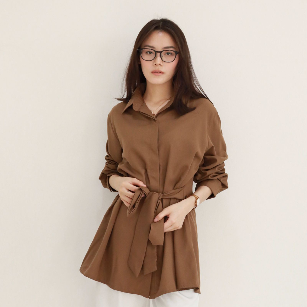 Msmo Bora Tied Shirt Kemeja Wanita / Blouse Wanita / Kemeja Lengan Panjang / Kemeja Kantor / Office Wear / Atasan Wanita
