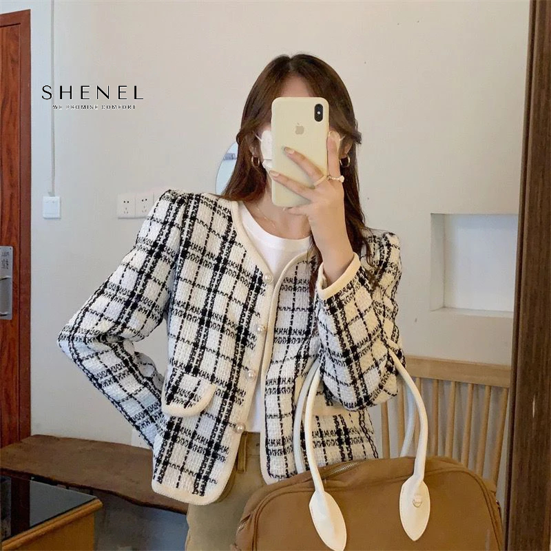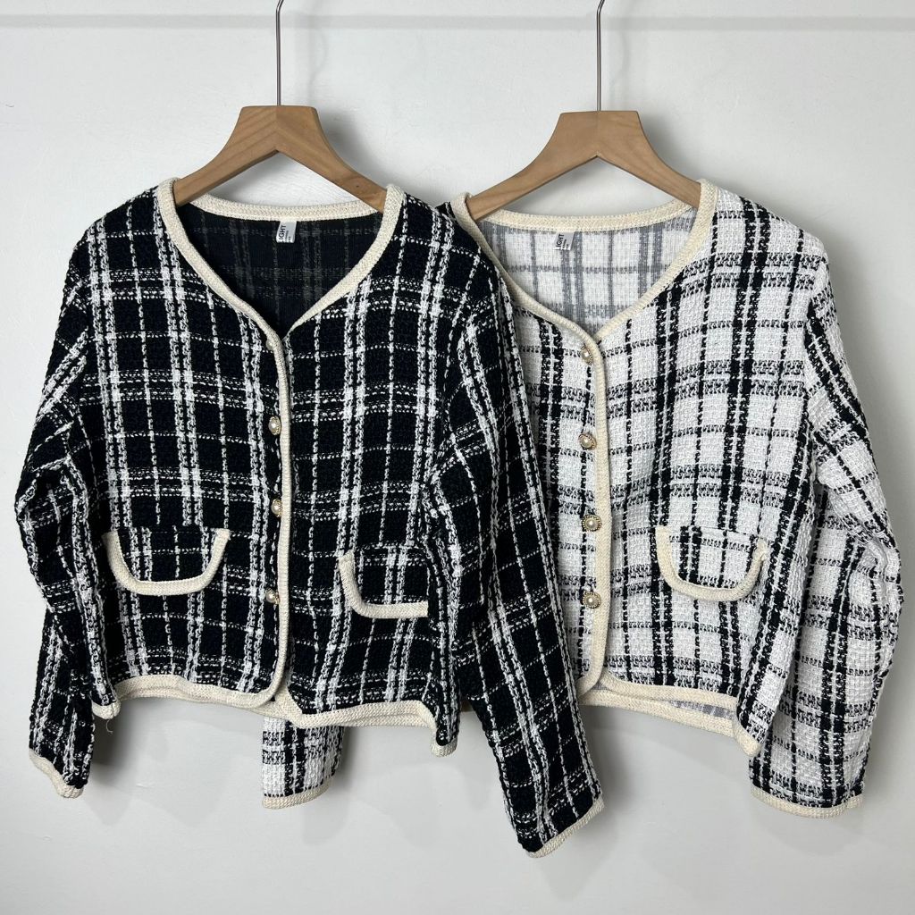 Shenel Zola Tweed Blazer Top Blazer Tweed Kotak Outer Wear Casual