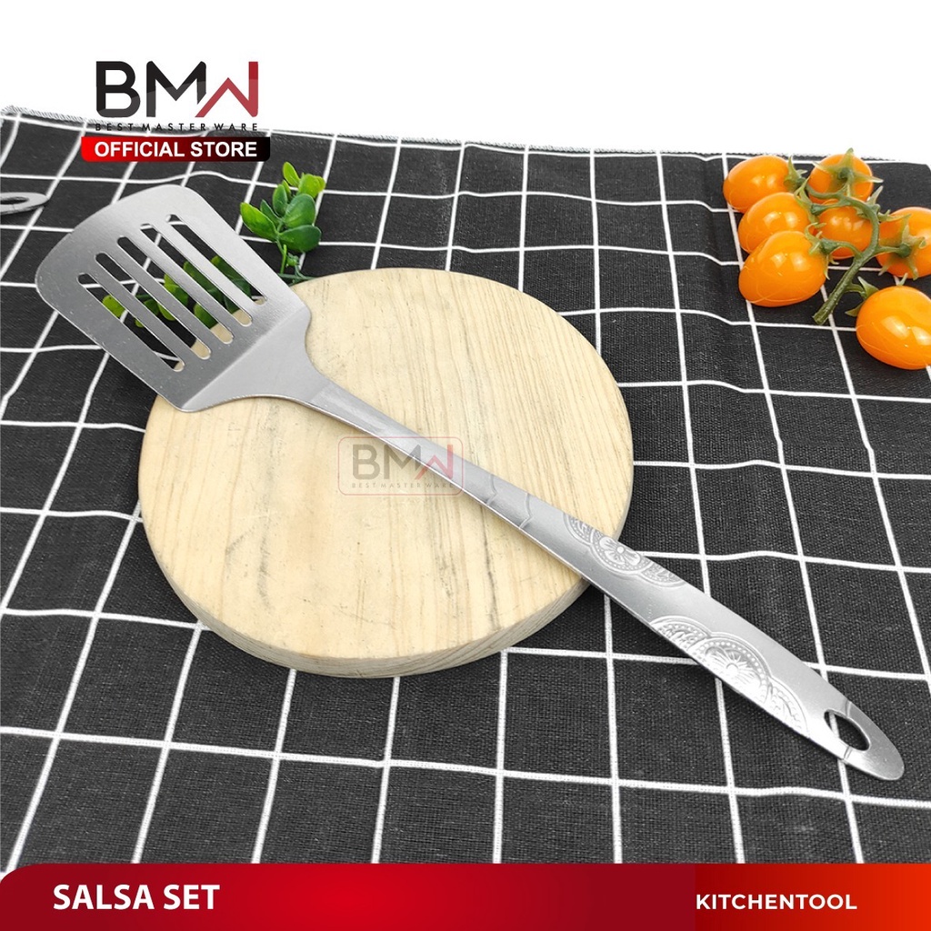 KITCHEN WARE SODET SPATULA SUTIL IRUS CENTONG PENGGORENGAN CENTONG SAYUR MOTIF BUNGA STAINLESS