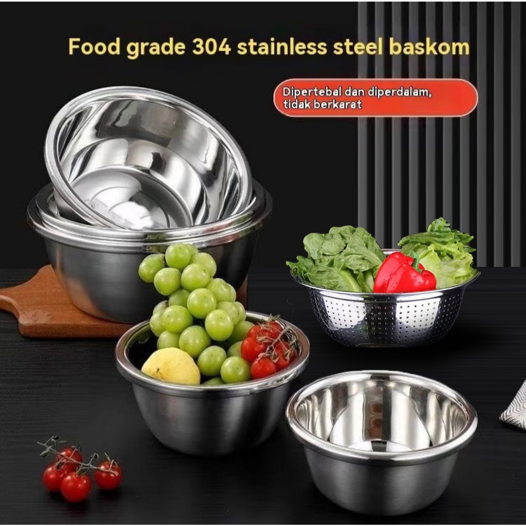 KITCHEN WARE BASKOM TEBAL PREMIUM WADAH MAKANAN TEMPAT CUCI SAYUR BUAH BERAS KOBOKAN MANGKUK MANGKOK STAINLESS TEBAL
