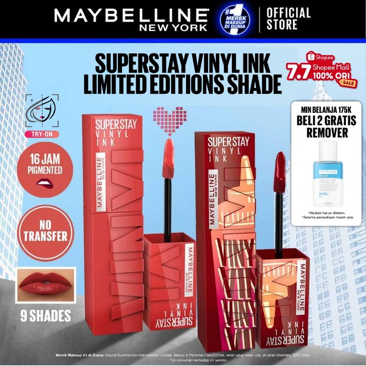 [Mall] Maybelline Official Store Vinyl Ink 4.2 Ml Limited Edition Lipstick Lipcream Lipstik Maybelline Matte