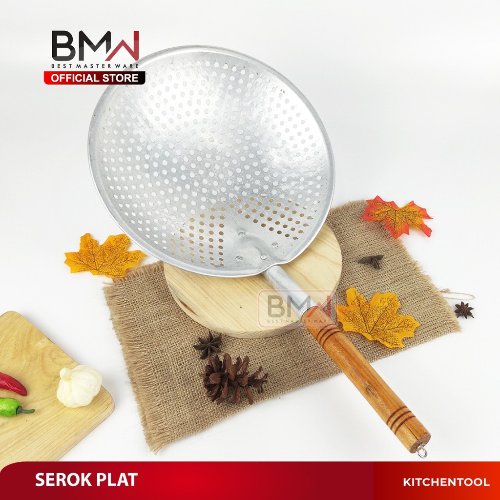 KITCHEN WARE SEROK PLAT MINYAK GORENG MASAKAN ALUMUNIUM GAGANG KAYU ANTI KARAT