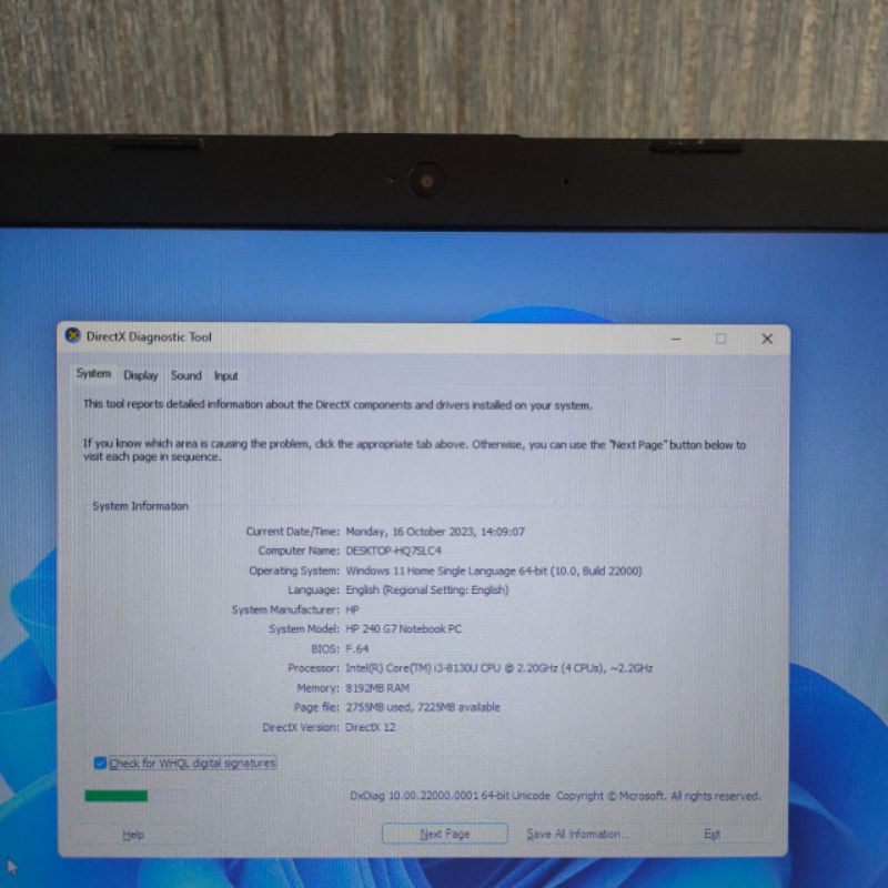 Laptop HP 240 G7 Core i3-8130 Gen 8th Ram 8Gb/SSD 128Gb Hd Graphics 620 Windows 10 Seri