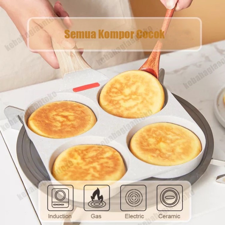 Wajan Panci Penggorengan Telur pancake 4 Lubang Non Stick Egg Frying Pan Teflon Telur Anti Lengket Stanless Steel
