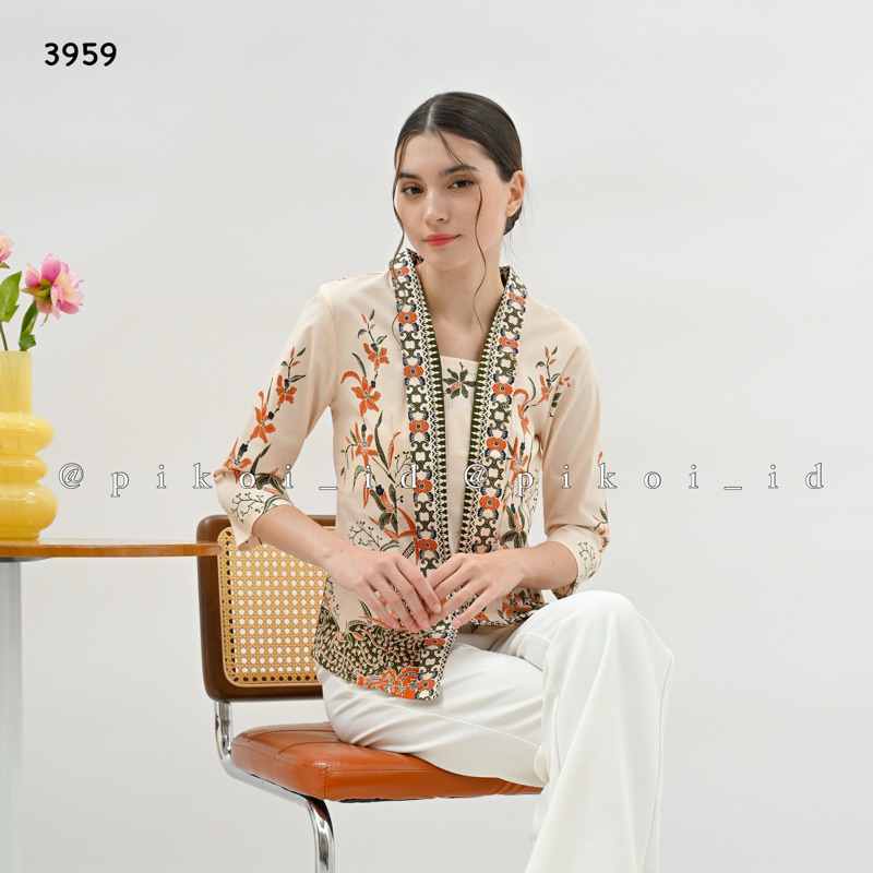 Atasan Kebaya Wanita Modern Tanpa Kancing / Baju Batik Kutu Baru Kebaya Wanita Lengan Panjang / Dahayu 3918 336 Panjang