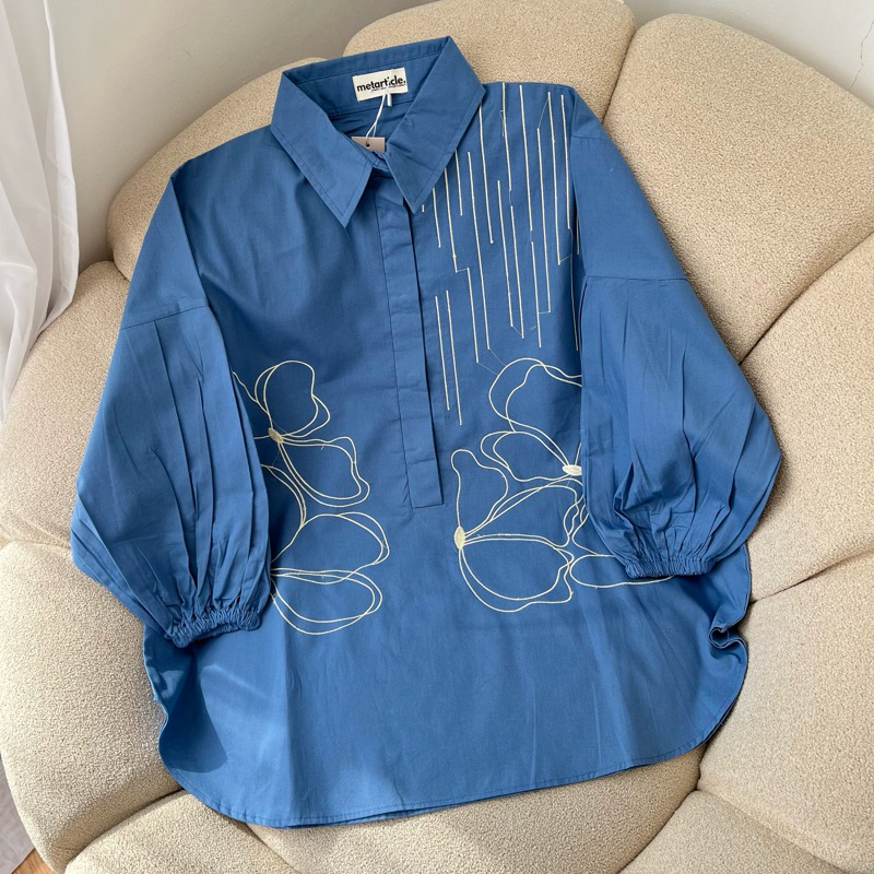 Charvy Shirt Atasan Wanita Kekinian Premiun Bahan Katun Bunga Bordir Kemeja Cantik