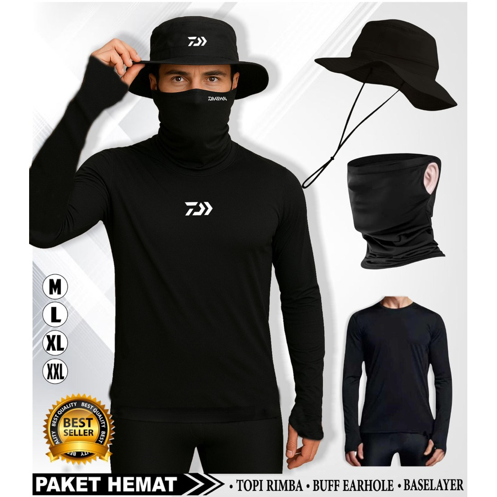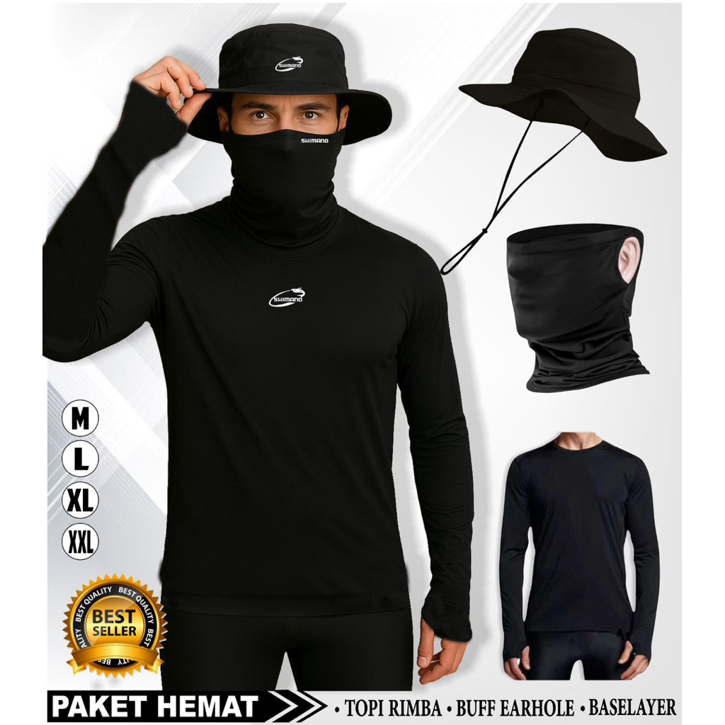 Paket 3 IN 1 Hemat Baju Mancing Lengan Panjang Kaos Mancing Topi Mancing Topi Outdoor Buff Masker Wajah Multifungsi Gunu