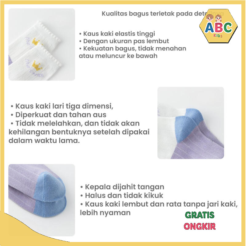 ABC KIDS KAOS KAKI ANAK COTTON QULITAS AAA+ SOCKS UMUR 1 2 3 4 5 6 7 8 9 10 11 12 TAHUN