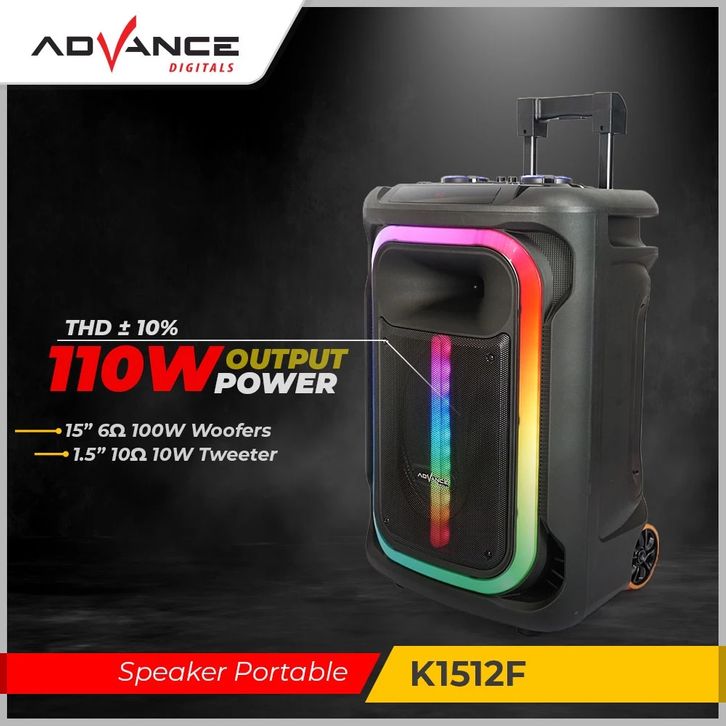 Advance K1512F Speaker Bluetooth Karaoke Wireless Portable Super Bass Aktif BONUS 2 Pcs Mic Wireless