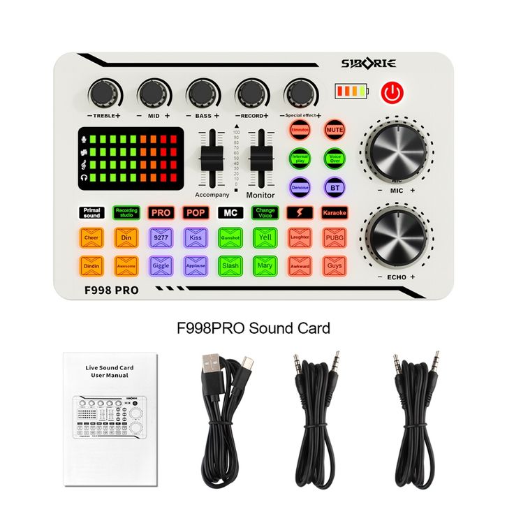 Soundcard Siborie F998PRO White Soundcard Mixer Bluetooth Live microphone karaoke mixer live broadcast External audio so