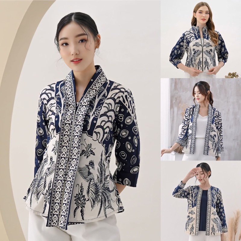 Blouse Batik Wanita Navy [Ht] Series - Atasan Batik - Cardigan Batik - Outer Batik - Seragam Batik - Batik Couple - Bati