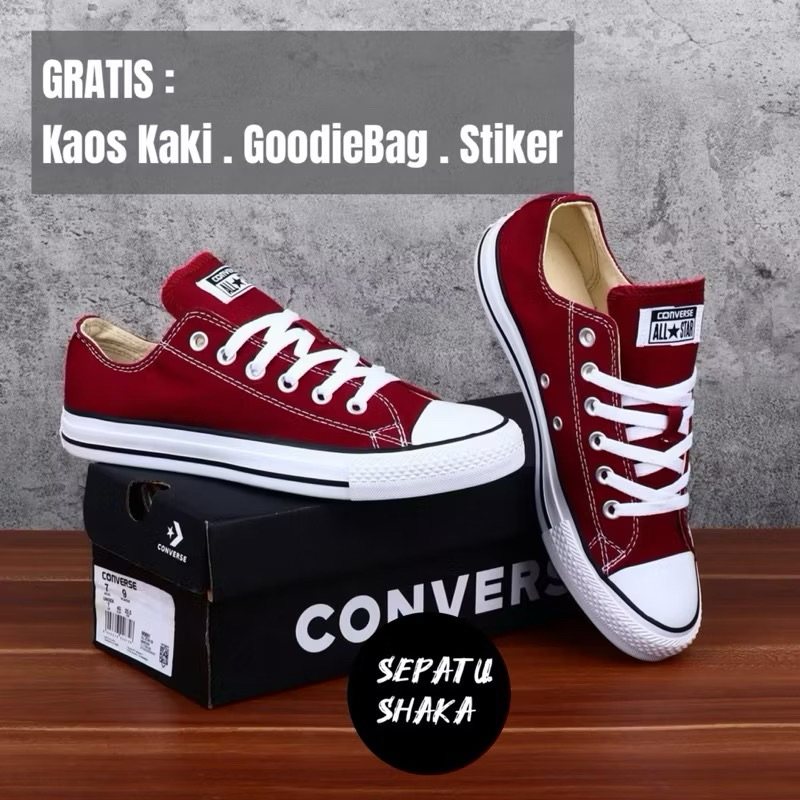 Sepatu Converse All Star Ox Maroon Burgundy Classic BNIB Ori/ Sepatu Sekolah Converse Marun Original