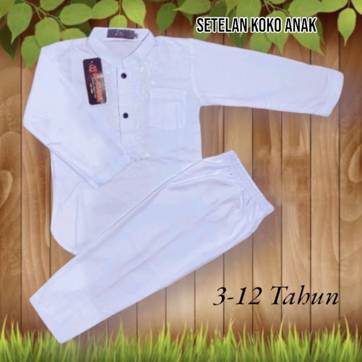 NEW Arrival BAJU KOKO ANAK SETELAN PUTIH LENGAN PANJANG/ BAJU MANASIK NGAJI SHALAT/ TK-SD ahekl
