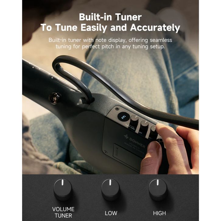 Donner Hush C Nylon string Silent Gitar Akustik Elektrik - Black