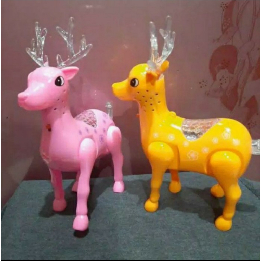 MAINAN RUSA BERJALAN MENGGUNAKAN BATERAI BUNYI ADA LAMPU / MAINAN RIBOT RUSA BERJALAN MUSIK DAN LAMPU
