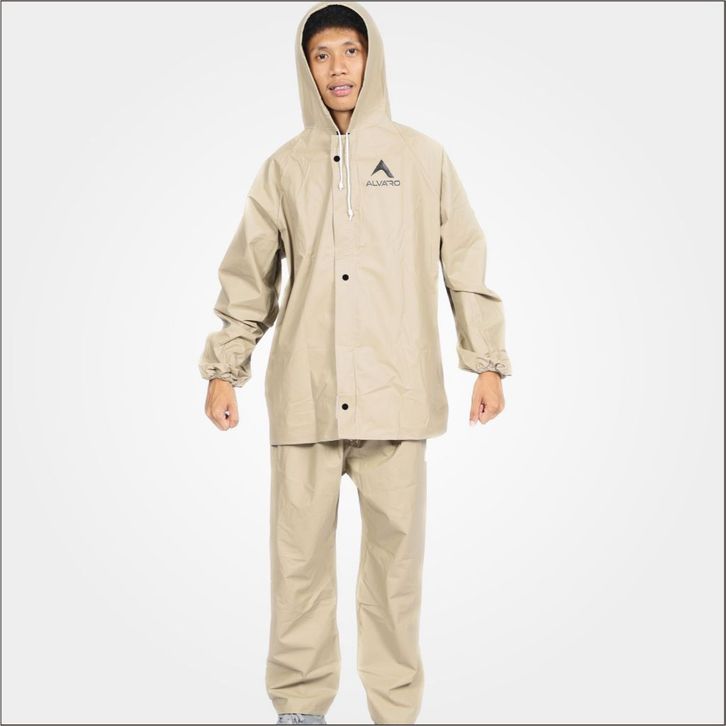 Jas Hujan Pria Wanita Mantel Setelan Celana Sealing Press Waterproof Anti air Bahan Pvc Tebal Raincoat Alvaro