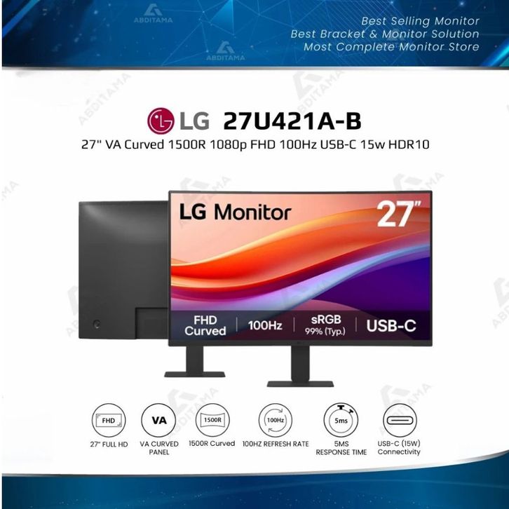 MONITOR PC LED LG 27U421A 27 INCH VA CURVED GAMING 1500R 1080P FHD 100HZ USB C 15W HDR10 BLACK STABILIZER DYNAMIC