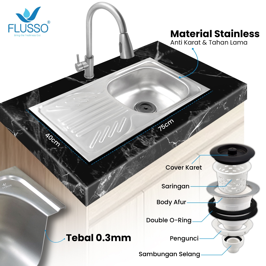 Flusso Wastafel Bak Cuci Piring / Sink Tempat Cuci Piring Stainless Berbagai Ukuran / Kitchen Sink