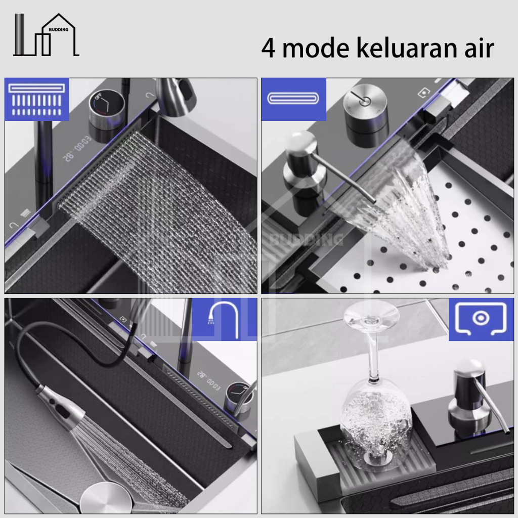 Stainless Steel wastafel cuci piring Modern kitchen sink bak cuci piring stainless sink cuci piring Hitam/Perak 1 lubang