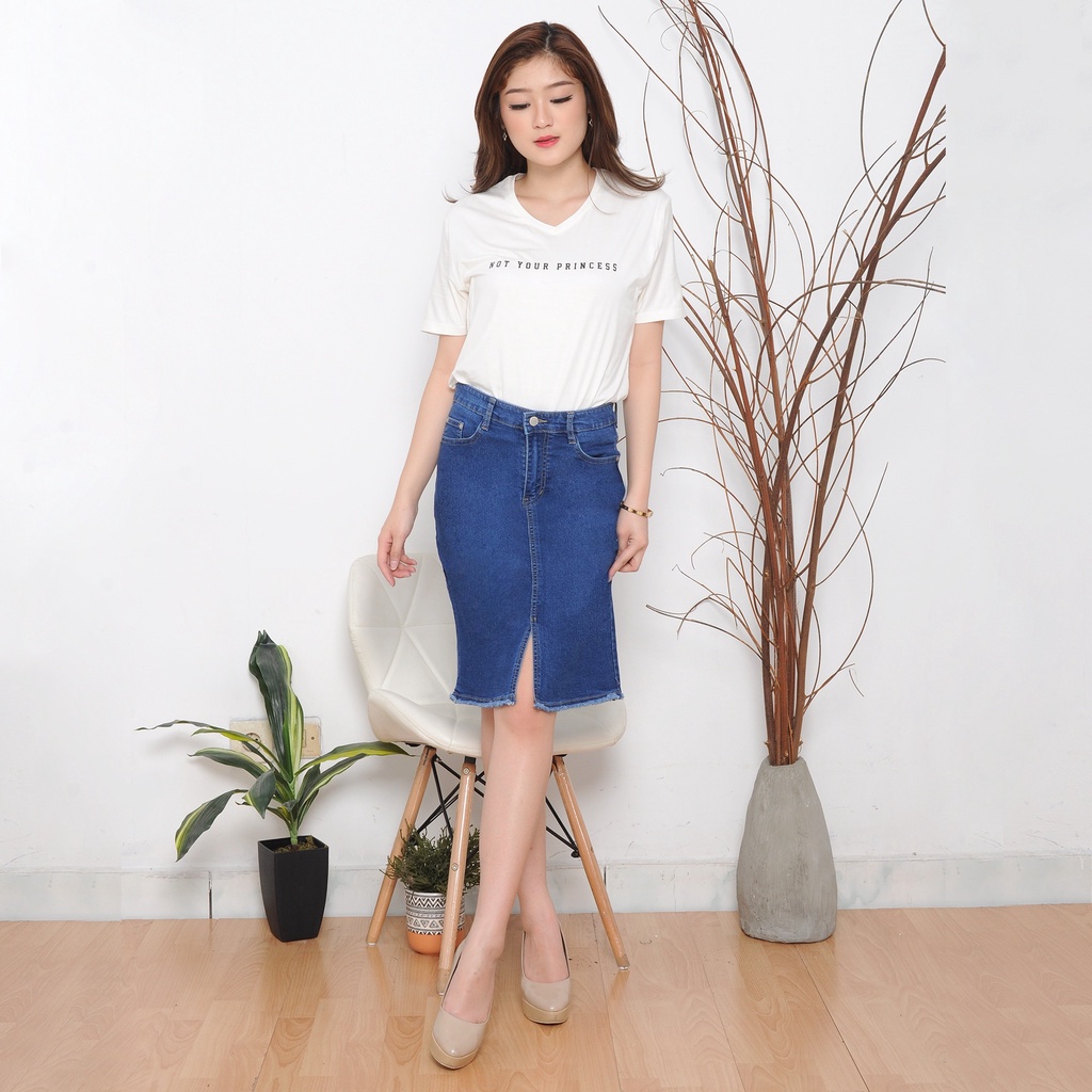 COSMOPOLITE - Rok Pendek Jeans Wanita Belah Tengah