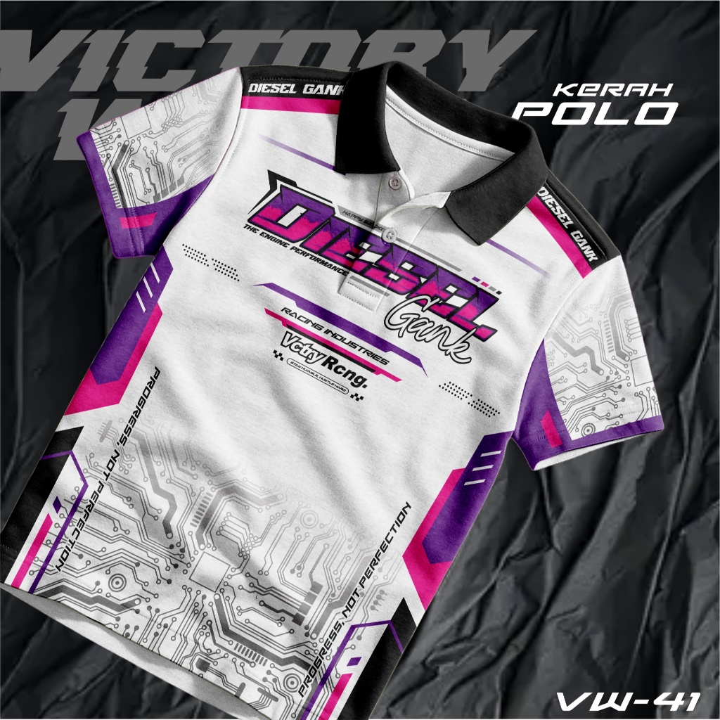 Jersey Kaos Racing Custom Diesel Gank Polo Kerah Kancing V-Neck, Kaos Satuan, Bahan Fullprint VW41