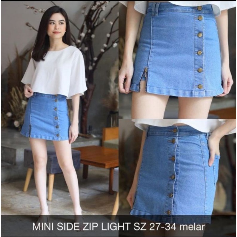 RESTOK ROK CELANA JEANS MINI SIDE ZIP LIGHT SIZE 27-34 BAHAN SOFTJEANS STRETCH MELAR