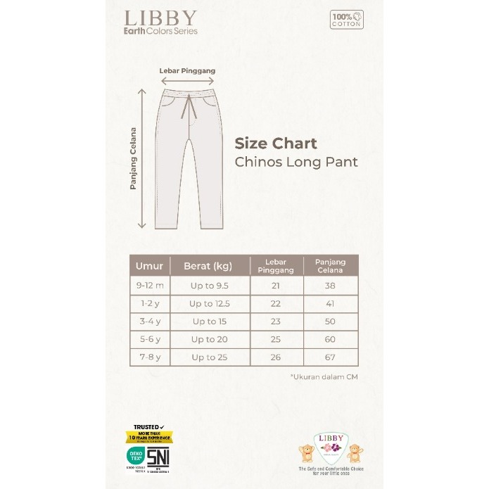 LIBBY LONG CHINOS 9 BULAN - 12 TAHUN CELANA PANJANG CHINO ANAK LAKI LAKI CBKS/SDI