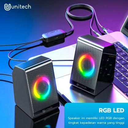 ITSTORE Speaker Unitech USB Echo Wave 1 RGB LED Speaker Komputer Laptop Multimedia Colokan Aux 3.5mm Extra Bass