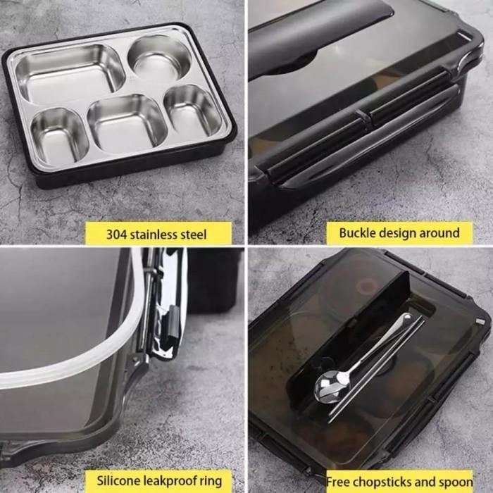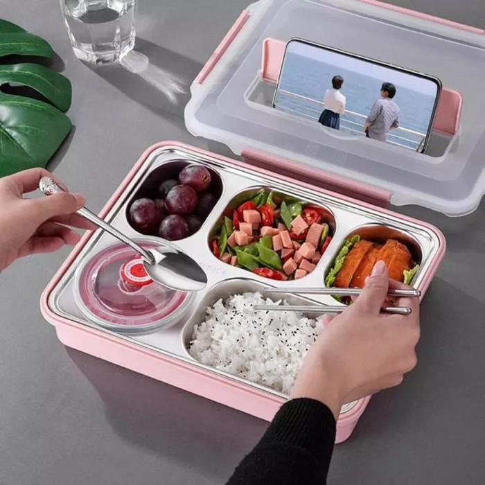 Triple W 1400ml Lunch Box Bento XL Kotak Bekal Besar Makan Siang Stainless Baja Silicon