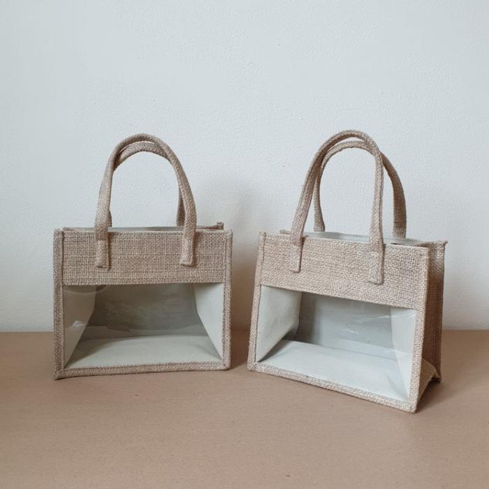 Tas goni mika (mini) [L060] - tas hampers mini tas parcel mini tas souvenir kecil tas jute burlap