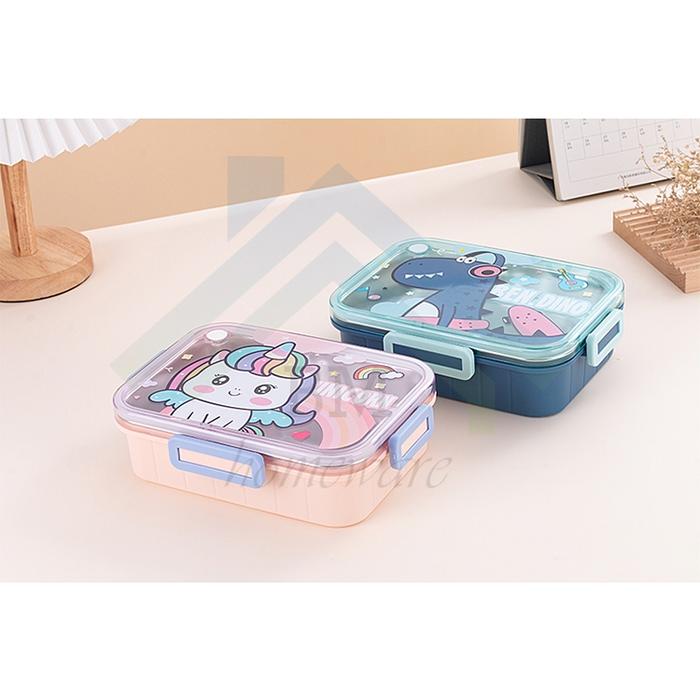 Kotak Makan Stainless Steel Karakter Lucu / Lunch Box Set Unicorn Dino Bekal Anak Souvenir