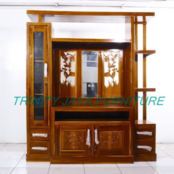 Bufet Partisi Tv Minimalis Sekat Ruangan Kayu Jati/trinityjayafurniture