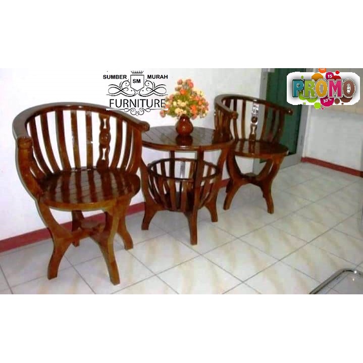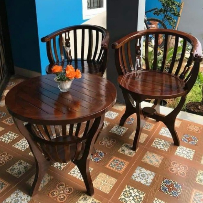 kursi teras depan rumah kursi teras jati type mangkok dan bulat, 2 kursi 1meja