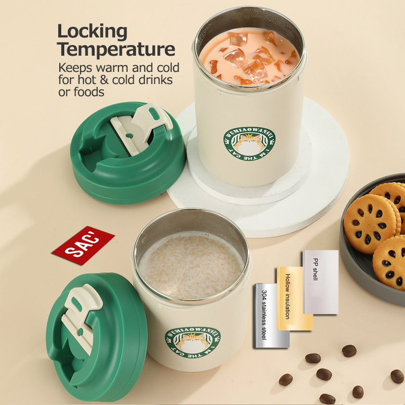 MIAO Gelas Tumbler Kopi Coffee Mug Stainless Termos Sup Tahan Panas Botol Minum Susu Sereal Sarapan Mini Thermal Thermos