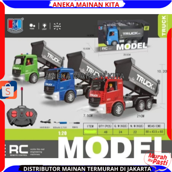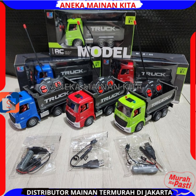 Mainan Anak Mobil Remote Control RC Dump Truck Warna Baterai Cas