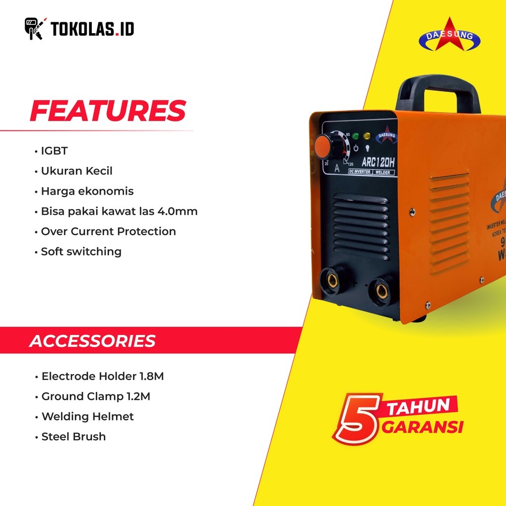 Mesin Travo Trafo Las Inverter MMA 900 Watt Daesung ARC 120 H Ampere Korea Bisa Kawat 4,0 mm Terlaris