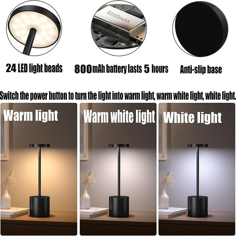 Bar Table Lamp Lampu Meja Nordic Minimalis Sentuh Metal Desk Lamp Table Lamp Cordless Led Table Lamp Portable Rechargeab