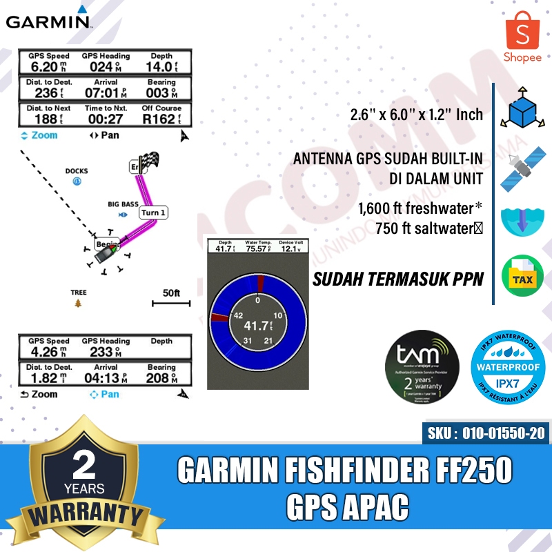 [Mall] Garmin FF250 FF 250 Fishfinder GPS Garmin 250 APAC CHIRP Pencari Ikan Original Garansi Resmi 2 Tahun