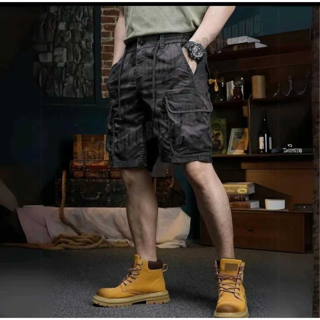 Celana Cargo Pendek Kargo Army Pria Green Camo Camouflage Short Pants