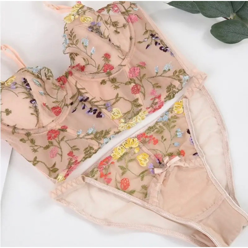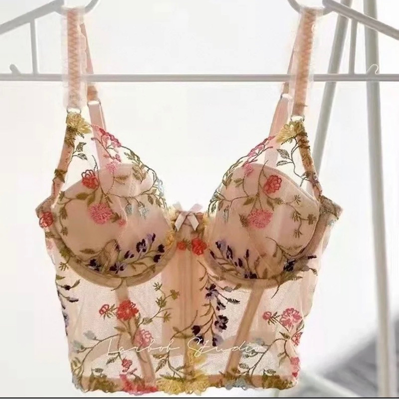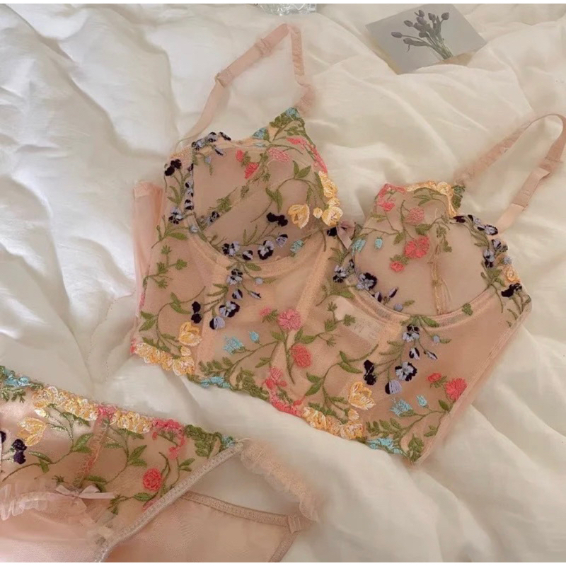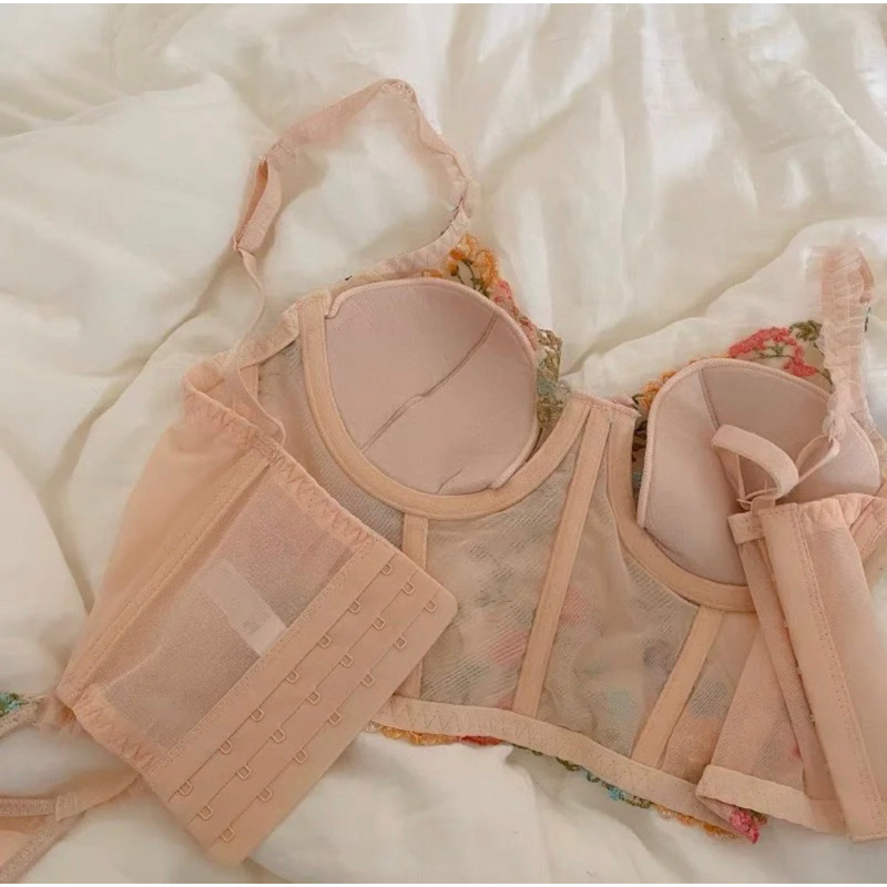 BH Bunga Bordir Bra CD Bikini Bustier Sexy Lace Embroidered Bralette Set Lingerie Korset Push Up Pakaian Dalam Summer Pu