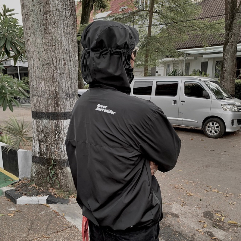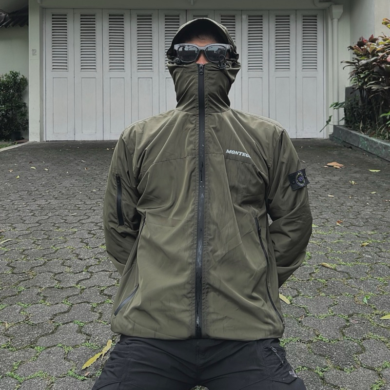 Jaket Gorpcore Outdoor Montego Never Surrender Waterproof Jaket Gunung Jaket Hiking Camping Anti Air