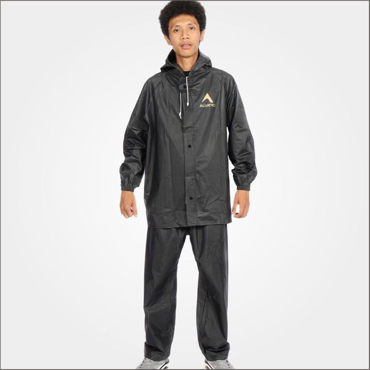 Jas Hujan Pria Wanita Mantel Setelan Celana Sealing Press Waterproof Anti air Bahan Pvc Tebal Raincoat Alvaro