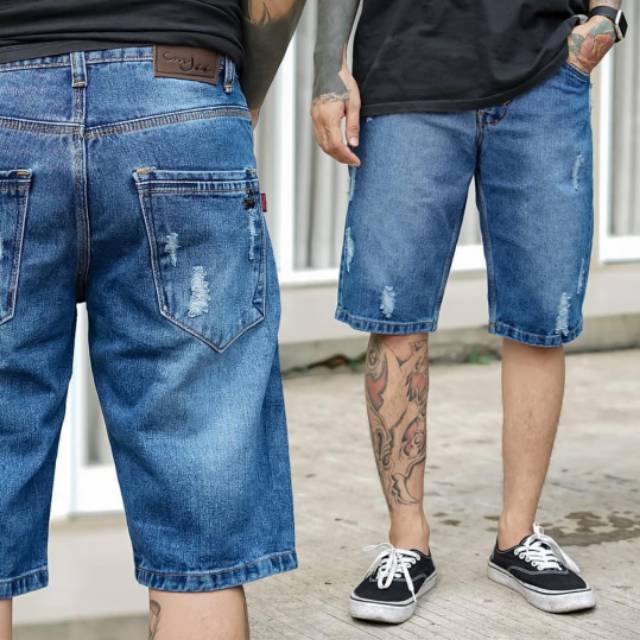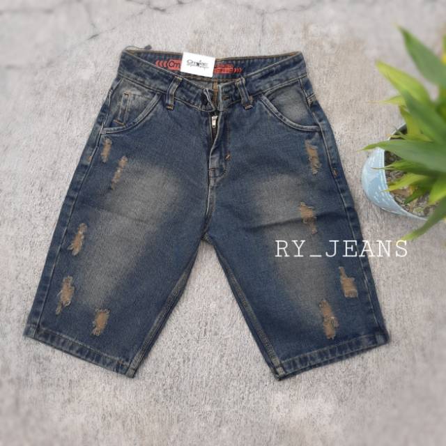 Celana jeans pendek pria jeans sobek cmj ripped jeans pendek sobek jumbo
