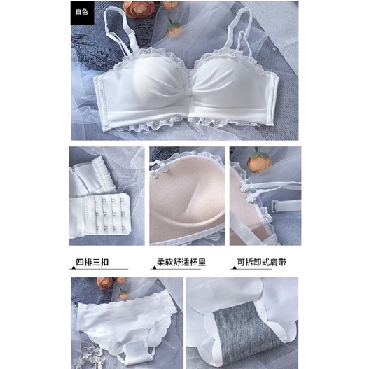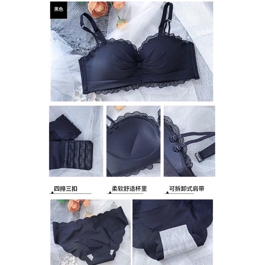 Premium Quality BH Push Up Bra Seamless Lace Busa Tanpa Kawat Celana Dalam CD Set Flower Kutang Remaja Abg BH Underwear
